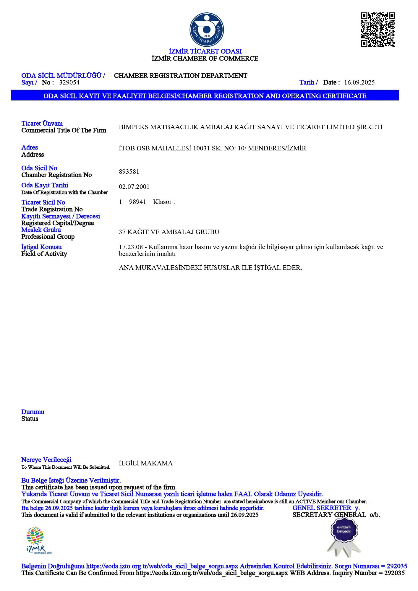 ** Documents can be examined within our company upon request, in accordance with our transparency principle.